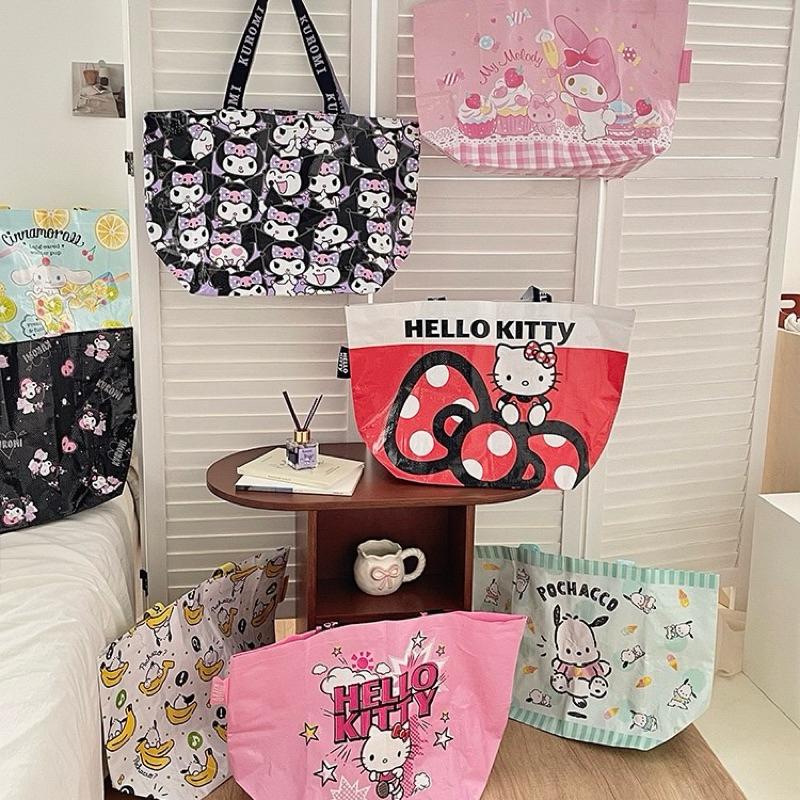 【台灣現貨🎁J&E比選物店】正版 三麗鷗 編織 購物袋 手提袋 摺疊 便攜 單肩包 包包 收納袋
