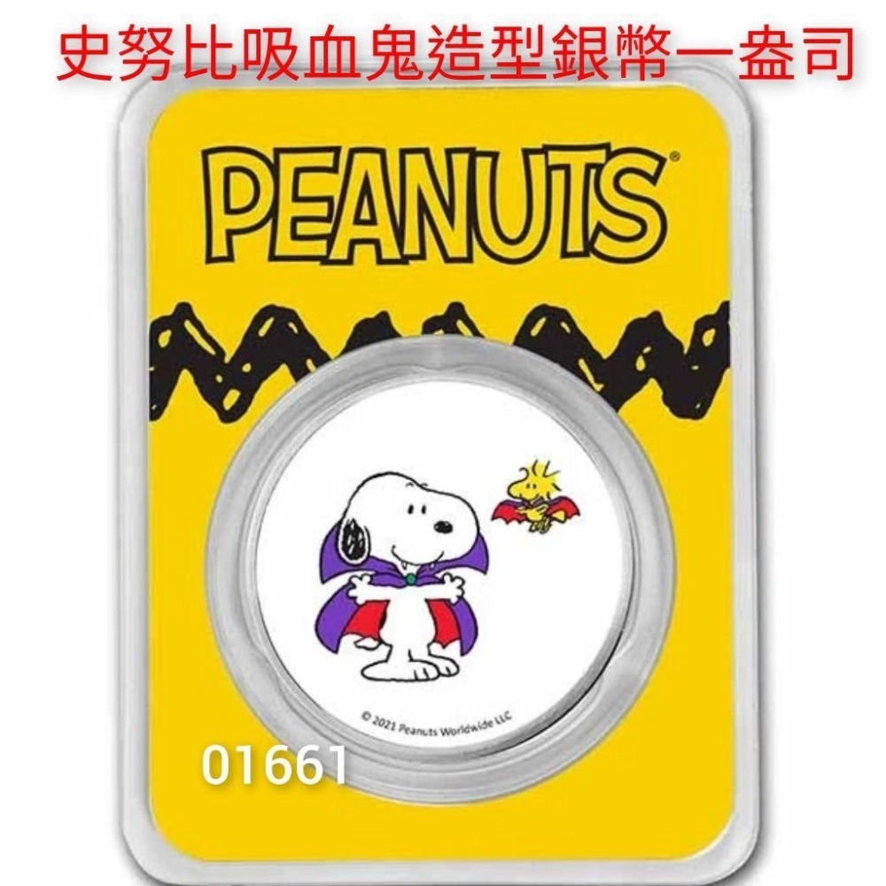 史努比吸血鬼銀幣,史努比銀幣,史奴比銀幣,銀幣,花生漫畫®史努比,伍德斯托克吸血鬼服裝 1 盎司彩色銀幣