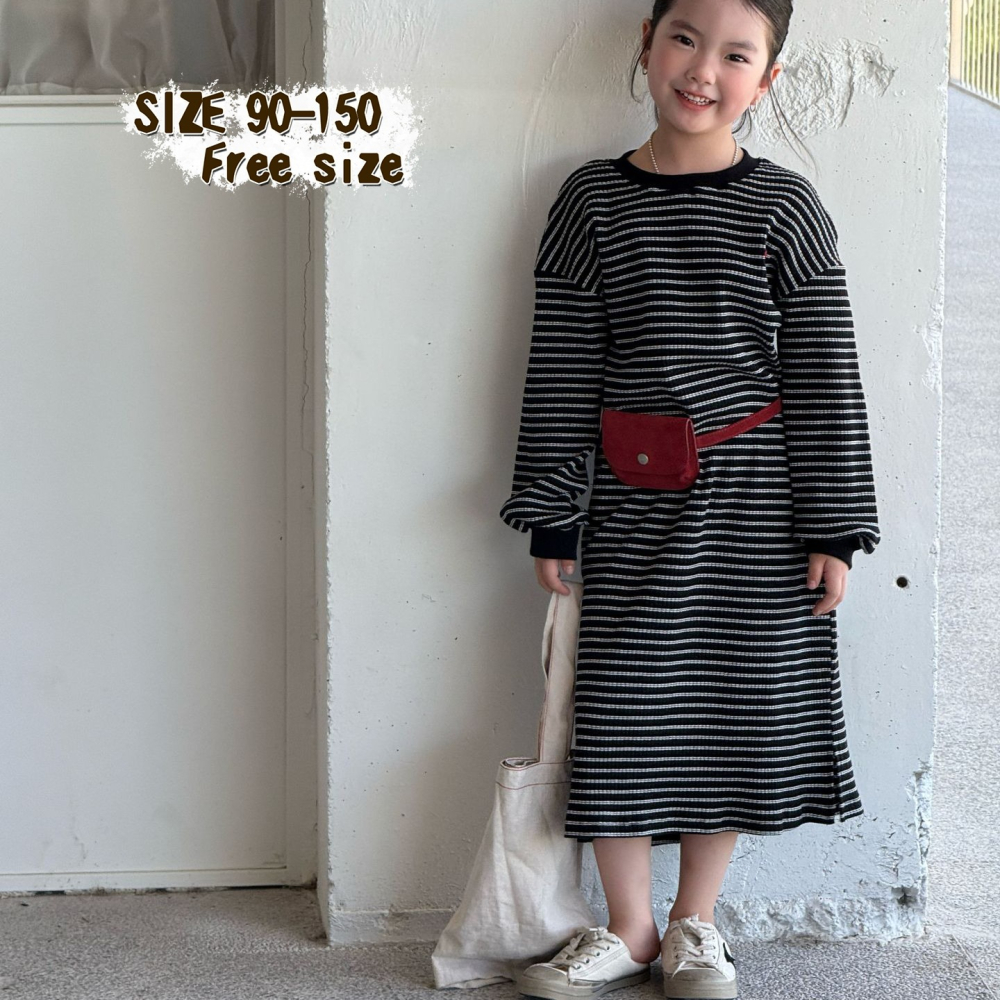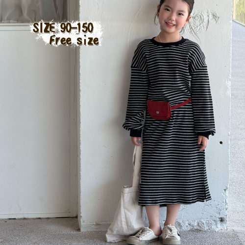 親子-坑條條紋連衣裙S509305