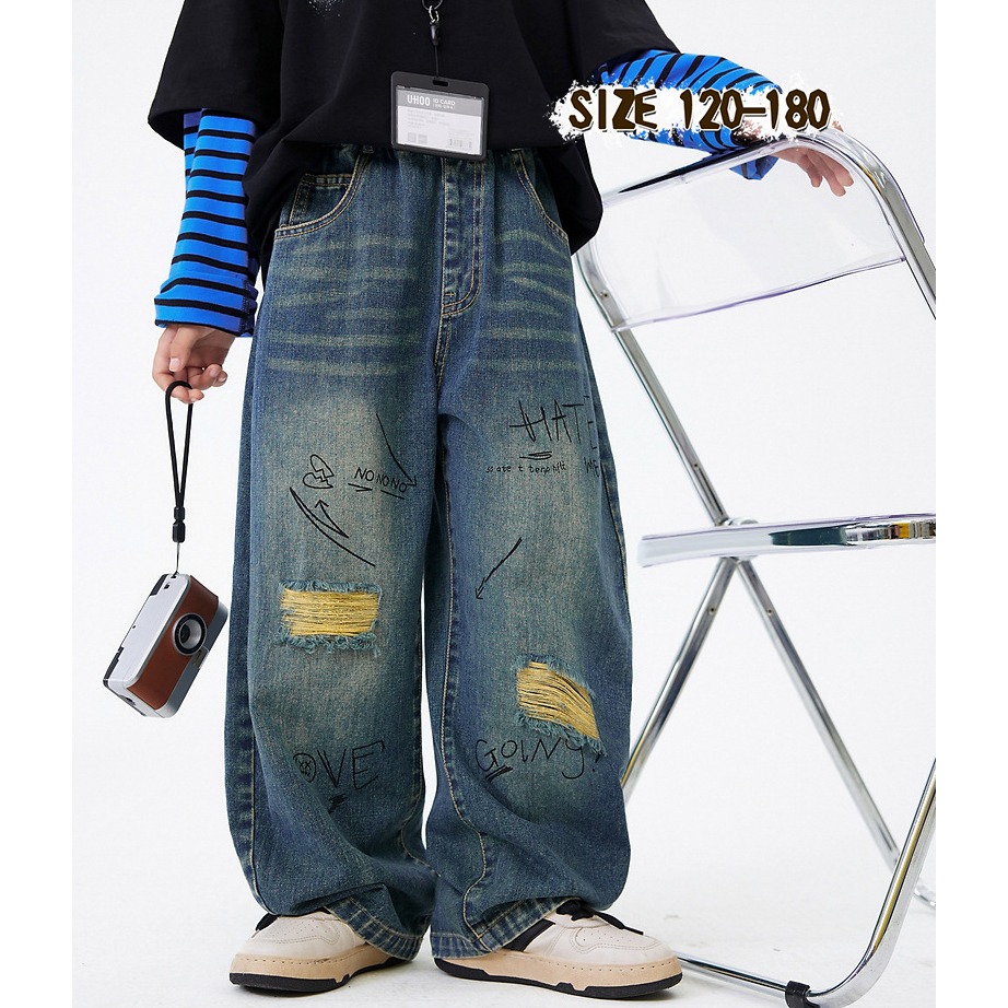 塗鴉破洞牛仔褲S509419