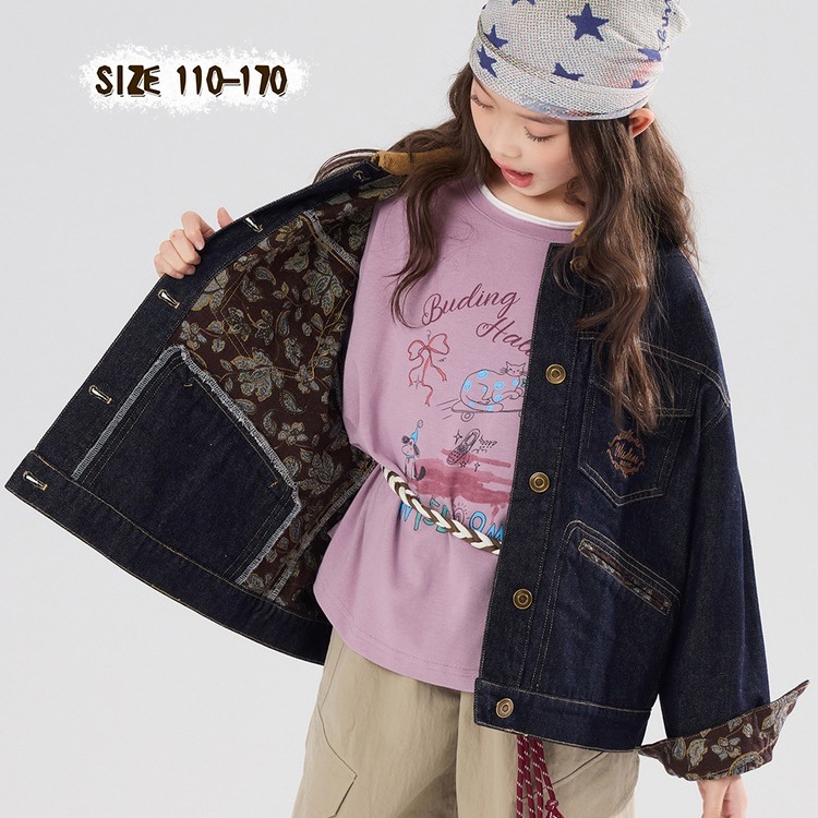 親子-印花復古撞色牛仔外套S602209