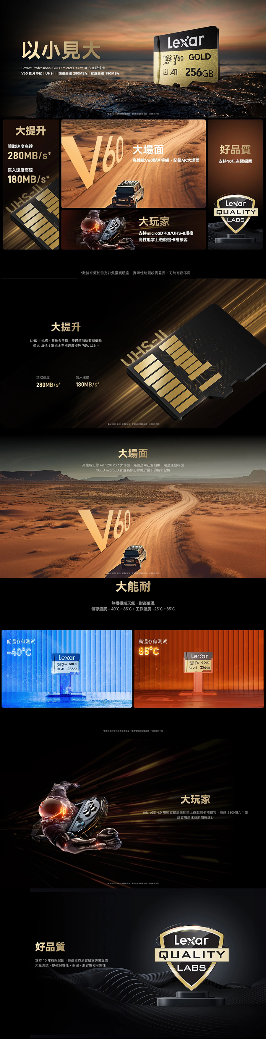 Lexar Professional 256G Gold microSDXC V60 UHS-II 4K攝影 公司貨