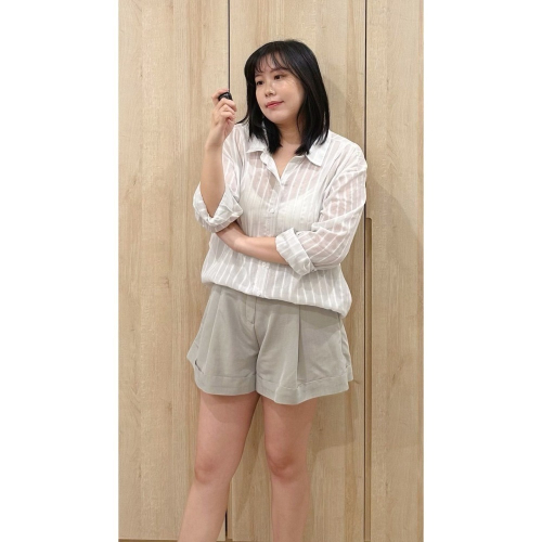 商品細節:布料柔軟舒適,顯瘦修身,領子後方綁帶設計,直條絲線帶點銀光,更顯氣質