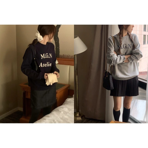 - T019品牌大LOGO大學T-深藍/灰