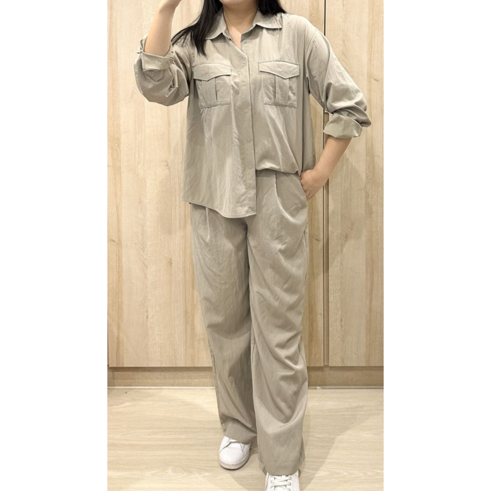 穿著此款 外套為寬鬆 長褲為舒適