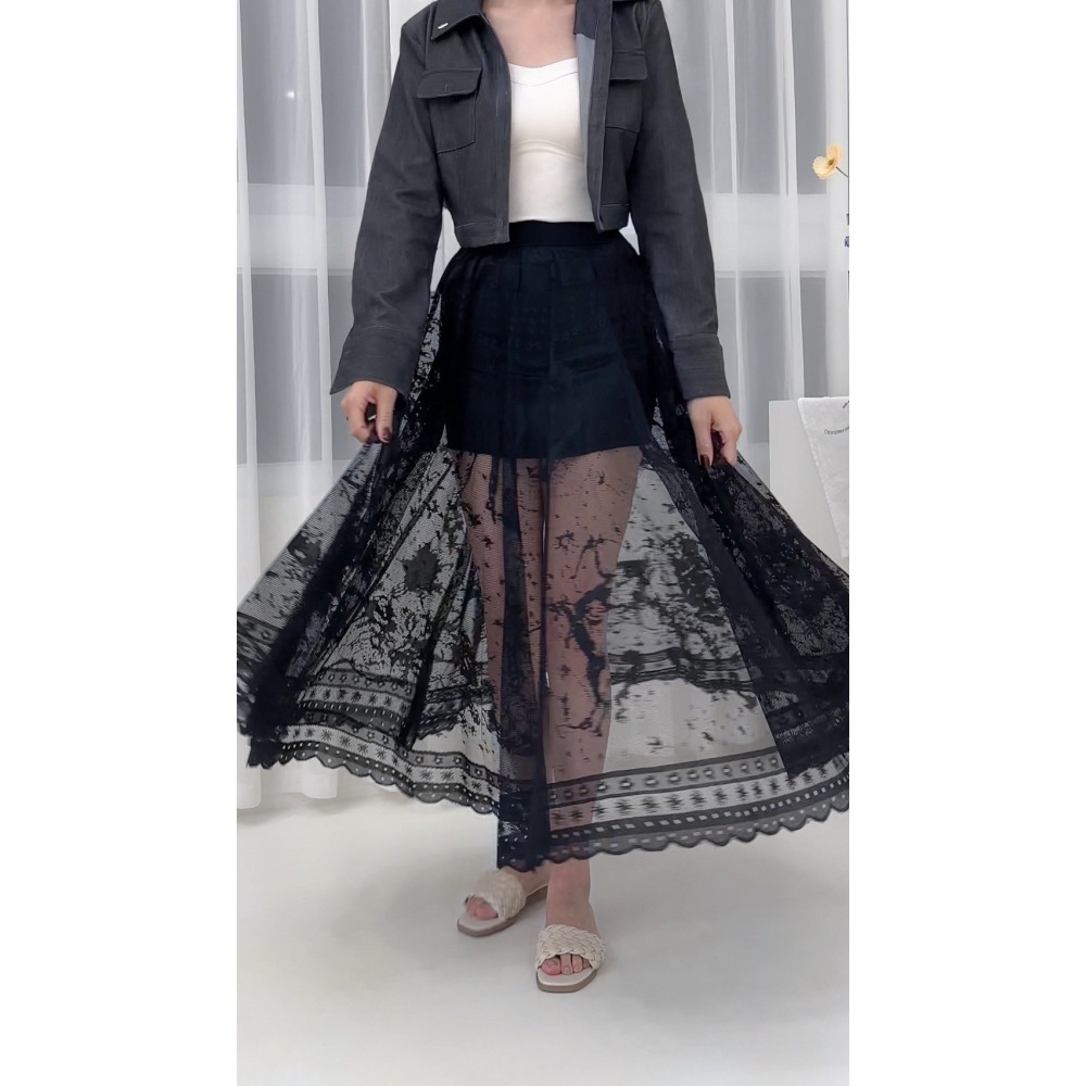 商品細節:高腰設計拉長比例,搭配內襯短裙,巧妙展現若隱若現的美