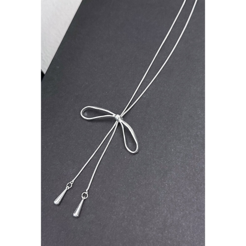 商品細節:鍊條部分使用純銀材質,墜飾可調整長度,銀色光澤與蝴蝶結交織,展現柔美氣質。