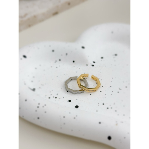 商品細節:俐落八角造型,展現極簡幾何美感,排鑲鑽增添時尚感