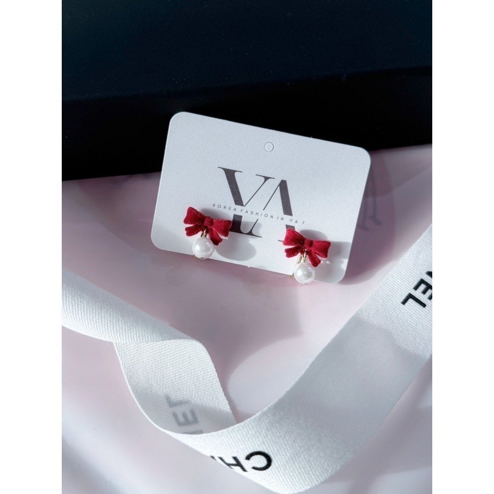 商品細節:經典紅植絨蝴蝶結搭配靈動珍珠,營造優雅優美的復古名媛感。