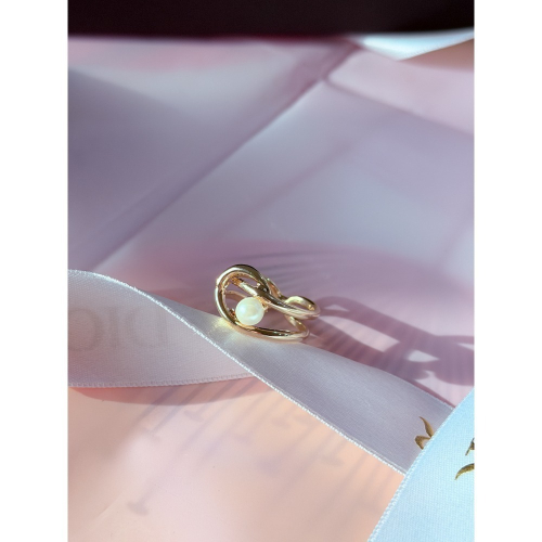 商品細節:戒指為合金,戒圍固定,交疊的金屬弧線環抱瑩潤珍珠,融合柔美與設計感,氣質滿分。