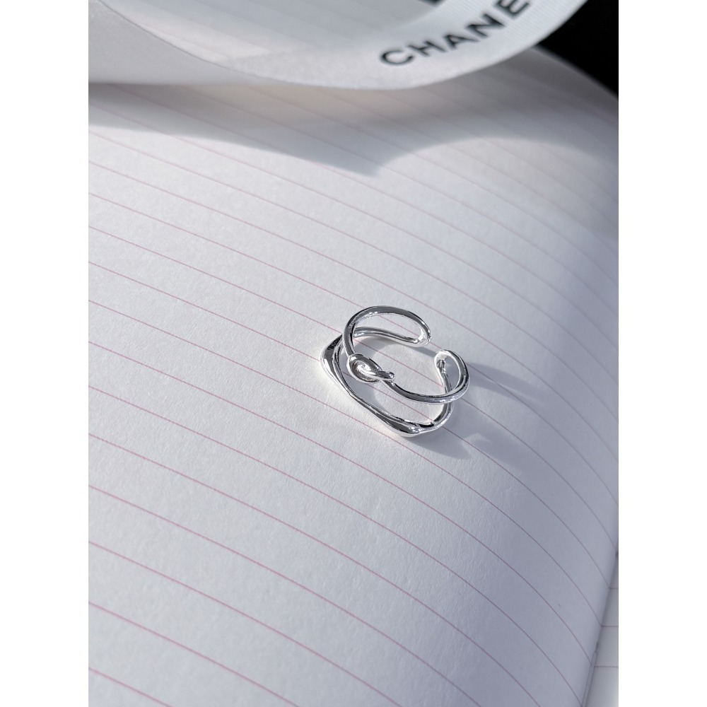 商品細節:戒指為合金,戒圍開放,流暢雙環交織成精緻繩結,象徵永恆連結,展現簡約層次感。