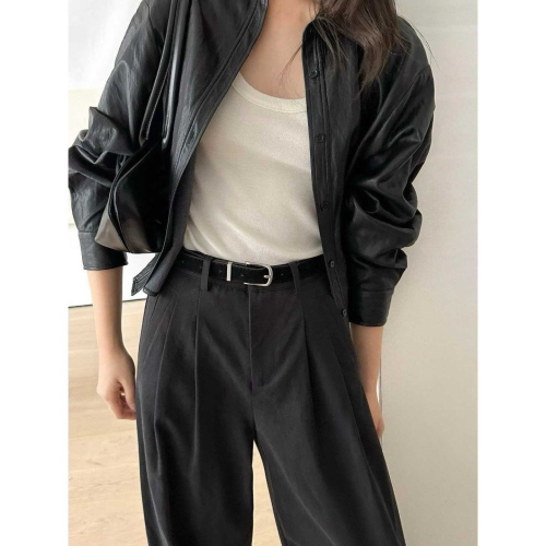 商品細節:皮感材質率性有型,短版剪裁拉長比例,單穿外搭都好看。