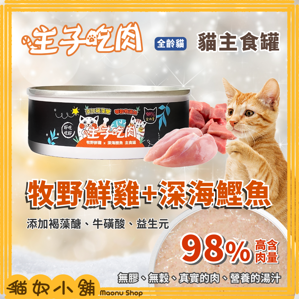 貓奴小舖 Maonu Shop🐈「主子吃肉 牧野鮮雞+深海鰹魚」貓主食罐 無膠 無穀 98%高含肉量 全齡貓 80g