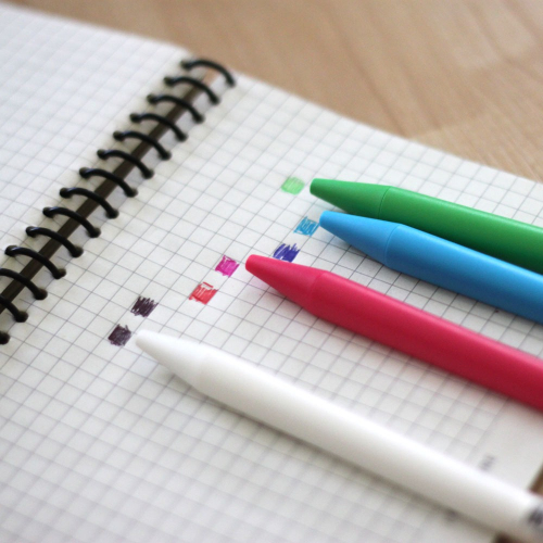 Radical EU 原子筆書寫的線條色豔鮮明,筆身與筆芯間的色彩律動表現更加柔暖和諧。