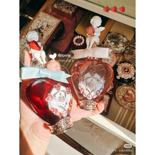 瓶身裝點著甜美可愛的草莓茶歇元素,瓶蓋是懷抱草莓的小丘比特浮雕。散髮復古又迷人的氣息。