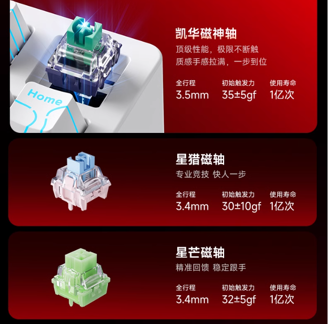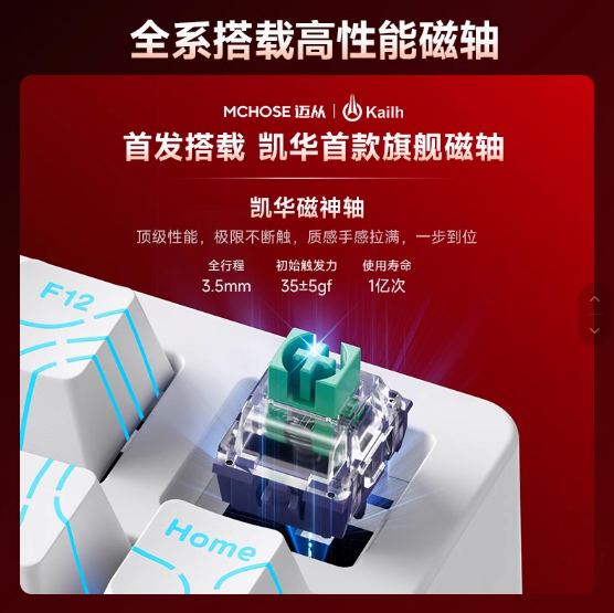軸體使用了凱華最新的磁神軸!材質方面使用了比POM更好的POK