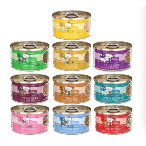 雞湯、雞肉、牛肉、牛肺、葵花籽油、刺槐豆膠、瓜爾豆膠、黃原膠、氯化鉀、磷酸三鈣、魚油、氯化膽鹼、硫酸鋅、牛磺酸、維生素E補充劑、維生素B3、硫酸亞鐵、錳蛋白、維生素B1、泛酸鈣、維生素A補充劑、維生素B6、硫酸銅、維生素B2、維生素D3補充劑、葉酸、碘化鉀、生物素、亞硒酸鈉、維生素B12補充劑。
