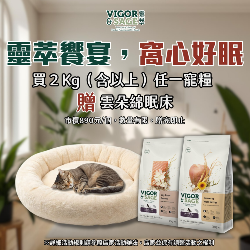 活動 靈萃貓 (無穀 低敏 白芷 鮭魚 貓飼料 貓糧) 荷蘭製造進口 買2Kg(含以上)任一寵糧 贈雲朵綿眠床60*60(大)