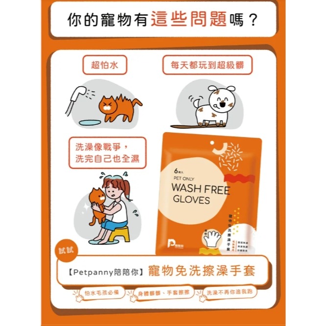 寵物專用免洗擦澡手套-6入$((eight)(eight)