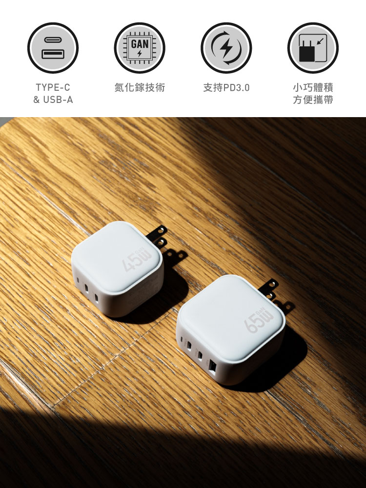Block 45W GaN氮化鎵雙孔快充頭- 品牌:solide