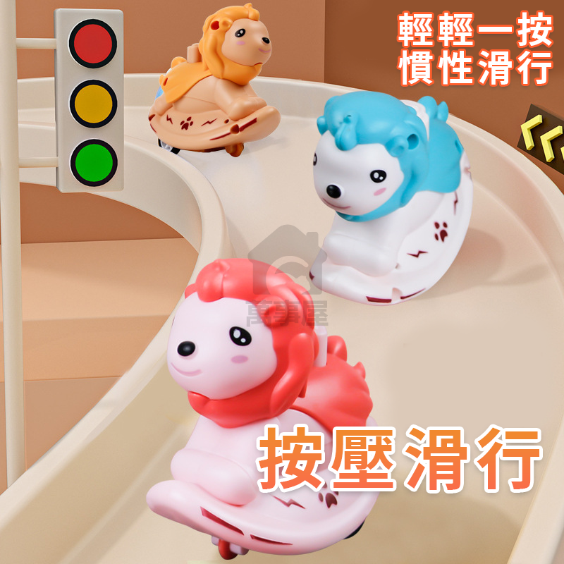 慣性壓力獅子車 壓力小獅子 壓力車 無電池 可愛造型 兒童玩具車 慣性玩具車 跑車 賽車 慣性小汽車 A0545