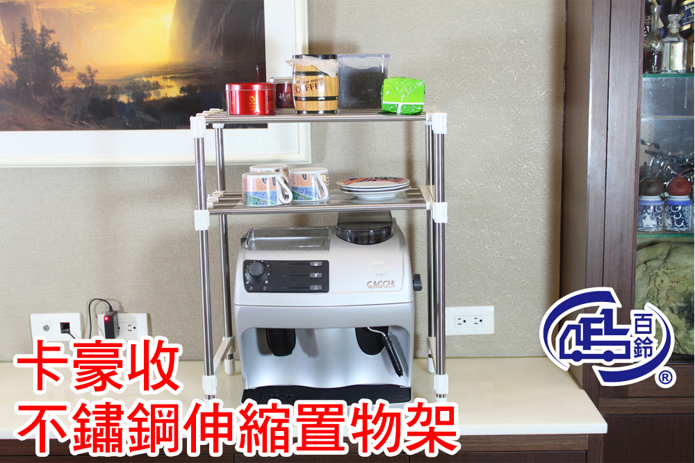 【百鈴】卡豪收不鏽鋼伸縮置物架(微波爐架/電器架/瓶罐架/收納架/廚房架/放置架)