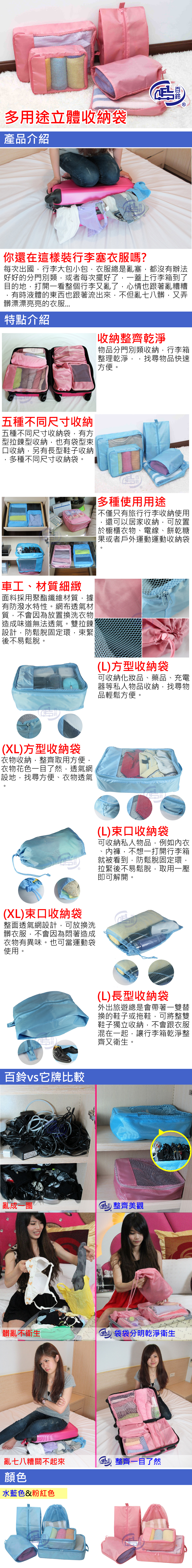 多用途立體收納袋-(L)方型收納袋x1個+(XL)方型收納袋x1個+(L)束口收納袋x1個+(XL)束口收納袋x1個+(L)長型收納袋x1個/組
