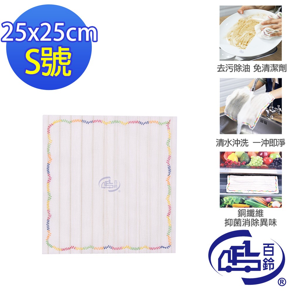 【百鈴】髒會滅銅纖維抑菌去汙免洗劑擦巾S號25x25公分-超值組(抹布/擦巾/清潔布/萬用巾/吸水巾/擦拭布)