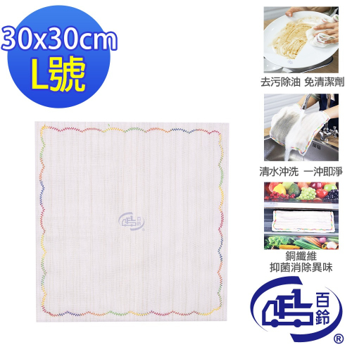 【百鈴】髒會滅銅纖維抑菌去汙免洗劑擦巾L號30x30公分-超值組(抹布/擦巾/清潔布/萬用巾/吸水巾/擦拭布)