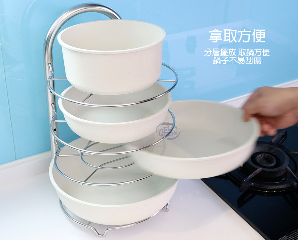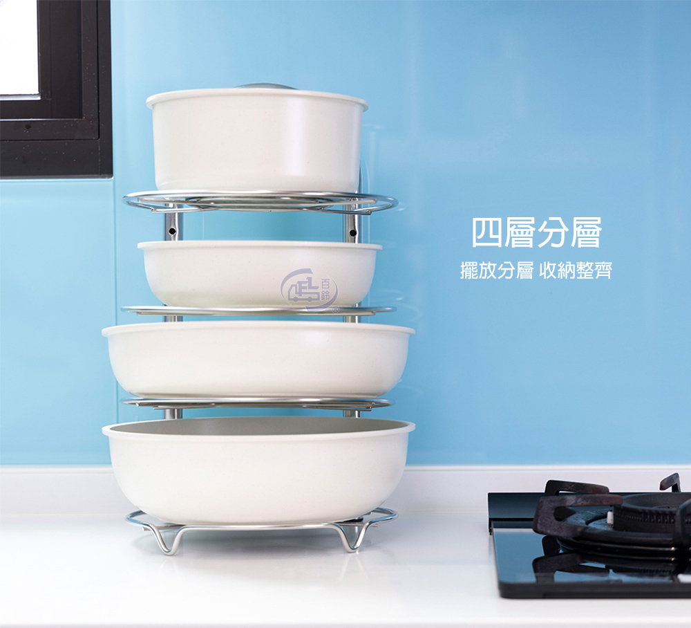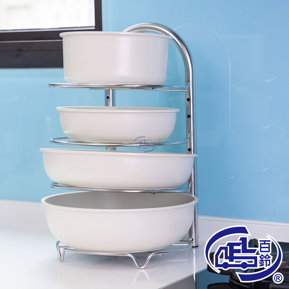 【百鈴】卡豪收不鏽鋼四層廚具收納架(鍋架/平底鍋架/炒鍋架/層架)