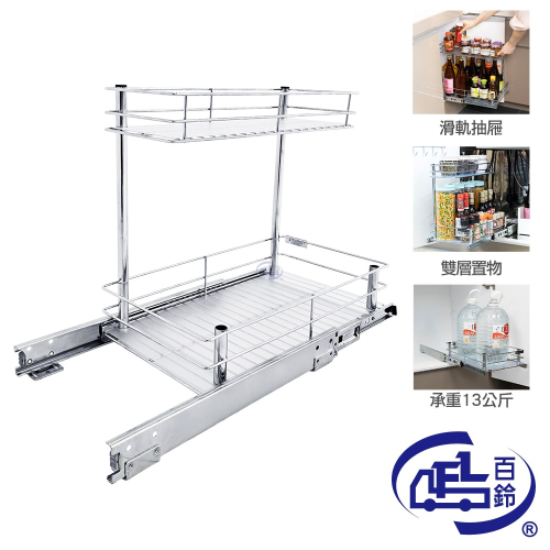 【百鈴】卡豪收抽屜式雙層置物架(微波爐架/電器架/瓶罐架/收納架/廚房架/放置架)