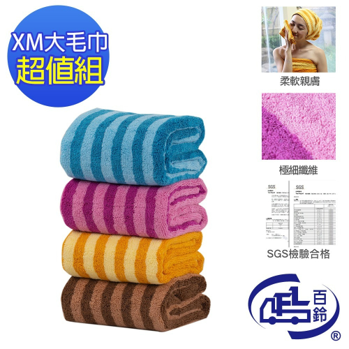【百鈴】Aqua繽紛色彩舒適巾XM大毛巾-超值組(吸水巾/運動毛巾/擦汗巾/擦頭巾/包頭巾)
