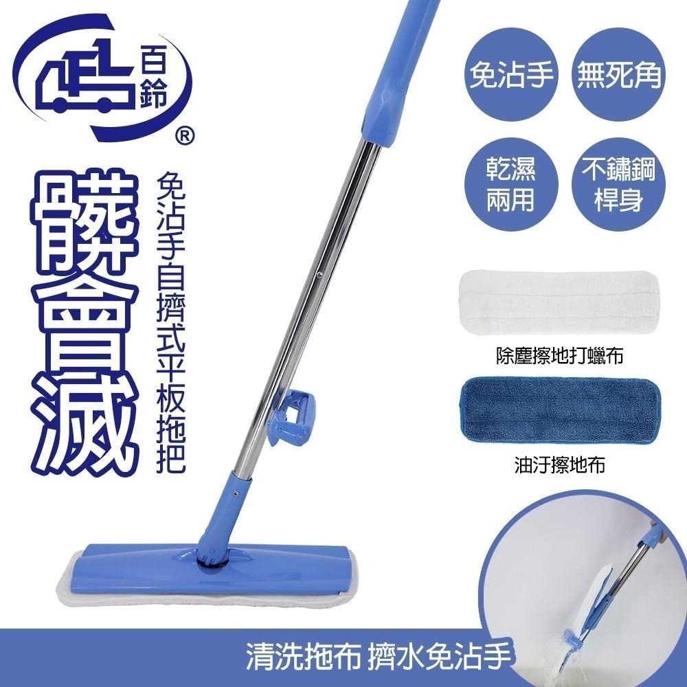 【百鈴】髒會滅免沾手自擠式平板拖把(平拖/免沾手/大板/吸水/乾濕兩用/除塵/地板清潔)