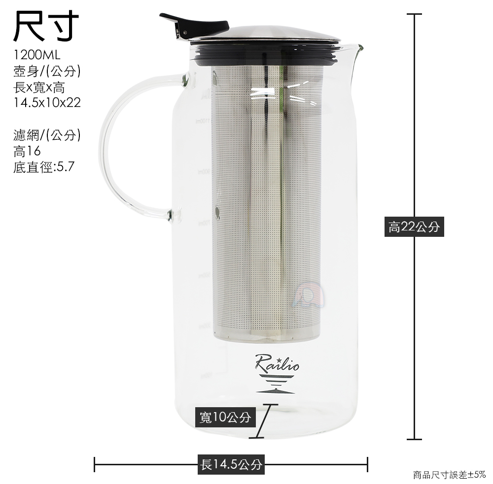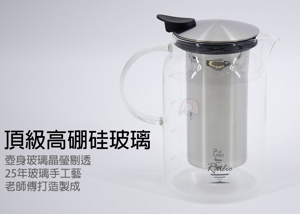 【Railio】摩登花茶耐熱玻璃壺(玻璃壺/玻璃瓶/水瓶/冷水瓶/冷水壺/飲料壺/咖啡壺/廚之坊/Linox)