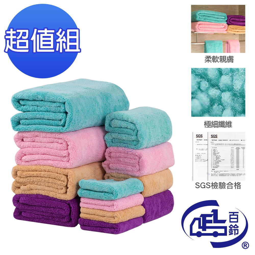 【百鈴】Aqua超乾爽舒適巾-超值組(吸水巾/毛巾/浴巾/方巾/擦頭巾/包頭巾)