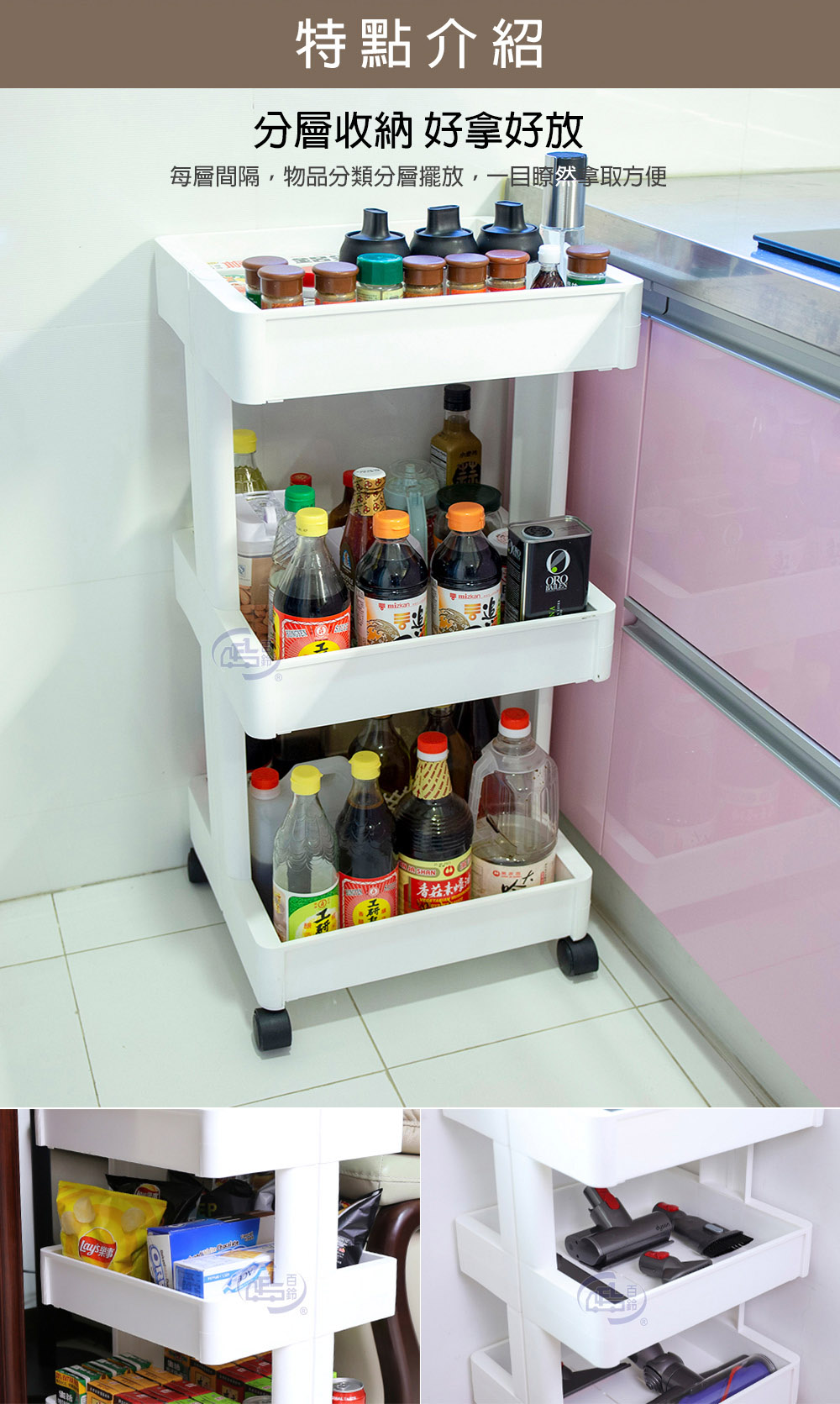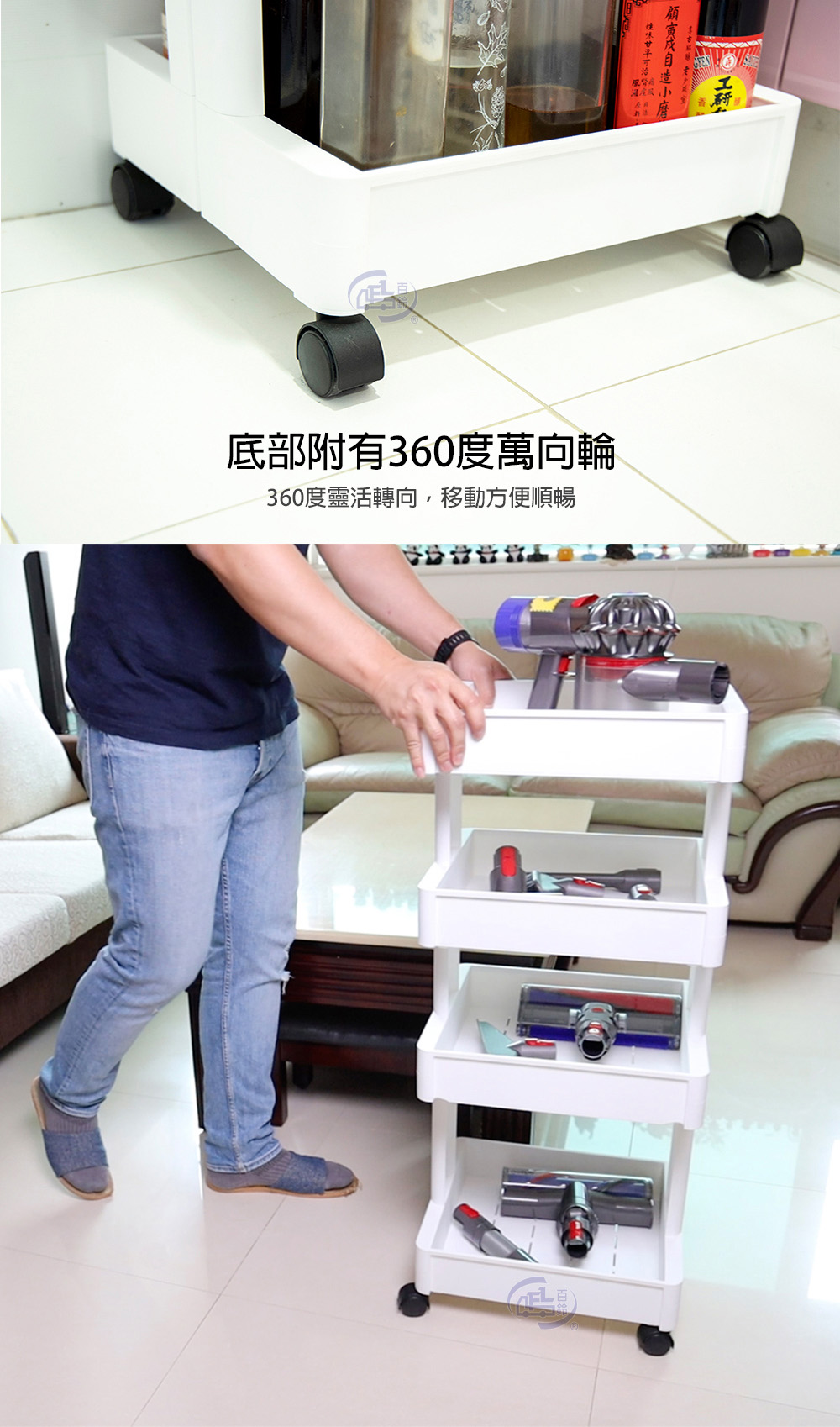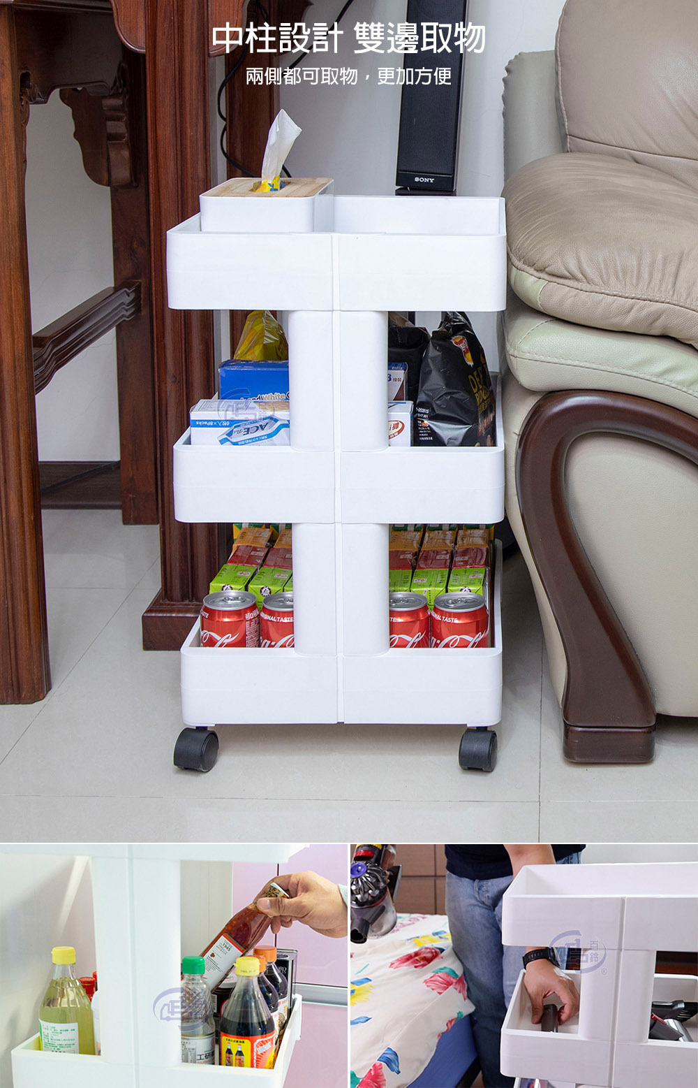 【百鈴】卡豪收靈活可移動中心支柱置物架(置物架/收納架/收納櫃/小物推車/層架/移動櫃)