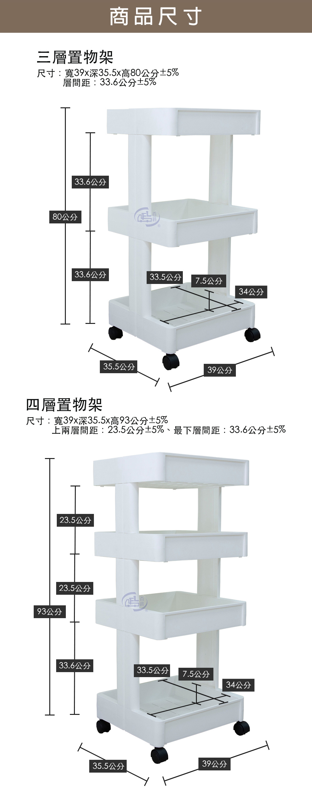 尺寸:寬39x深35.5x高80公分±5%/層間距:33.6公分±5%