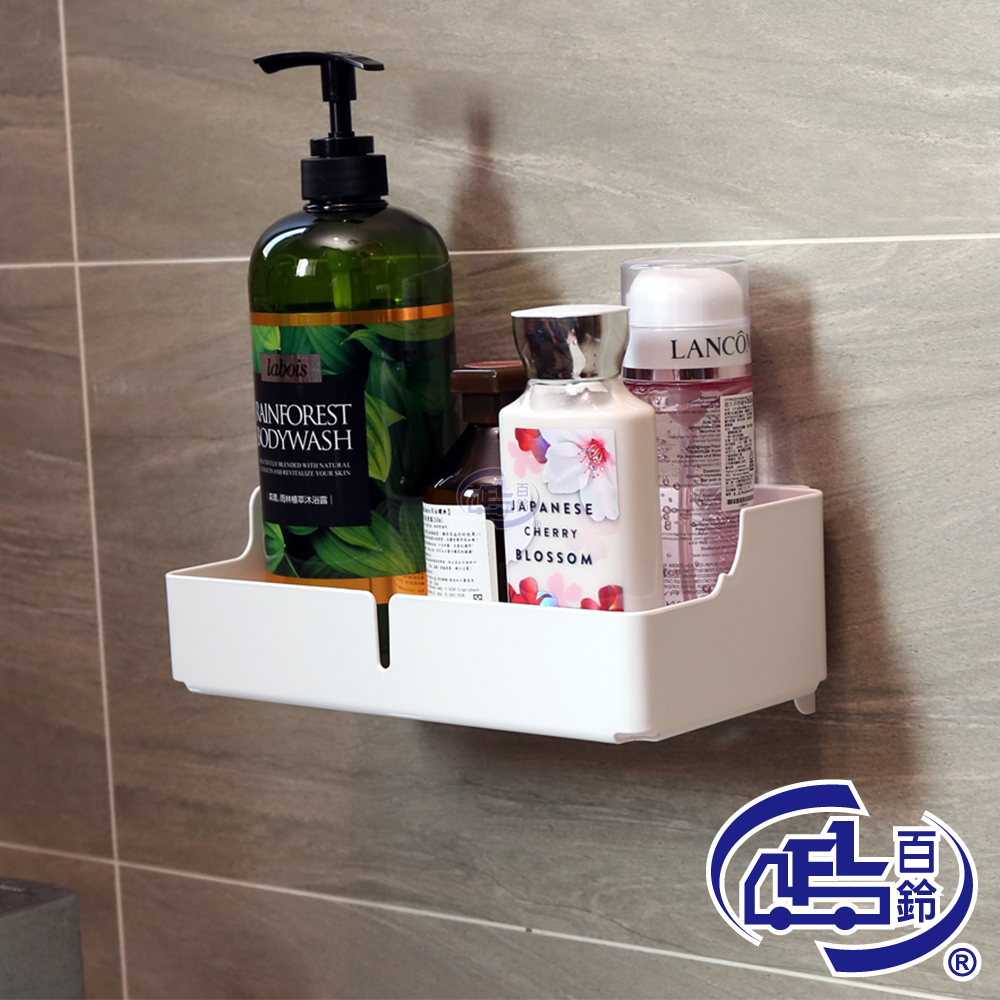 【百鈴】珍豪貼免鑽孔無痕塑鋼-長方形置物架(無痕貼/免釘/免鑽/置物架/瓶罐架/小物收納/洗劑架)