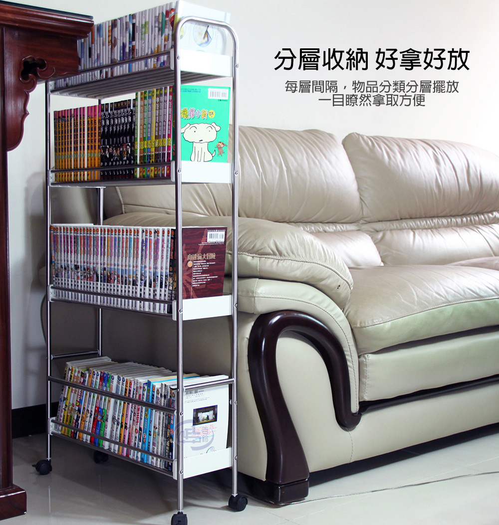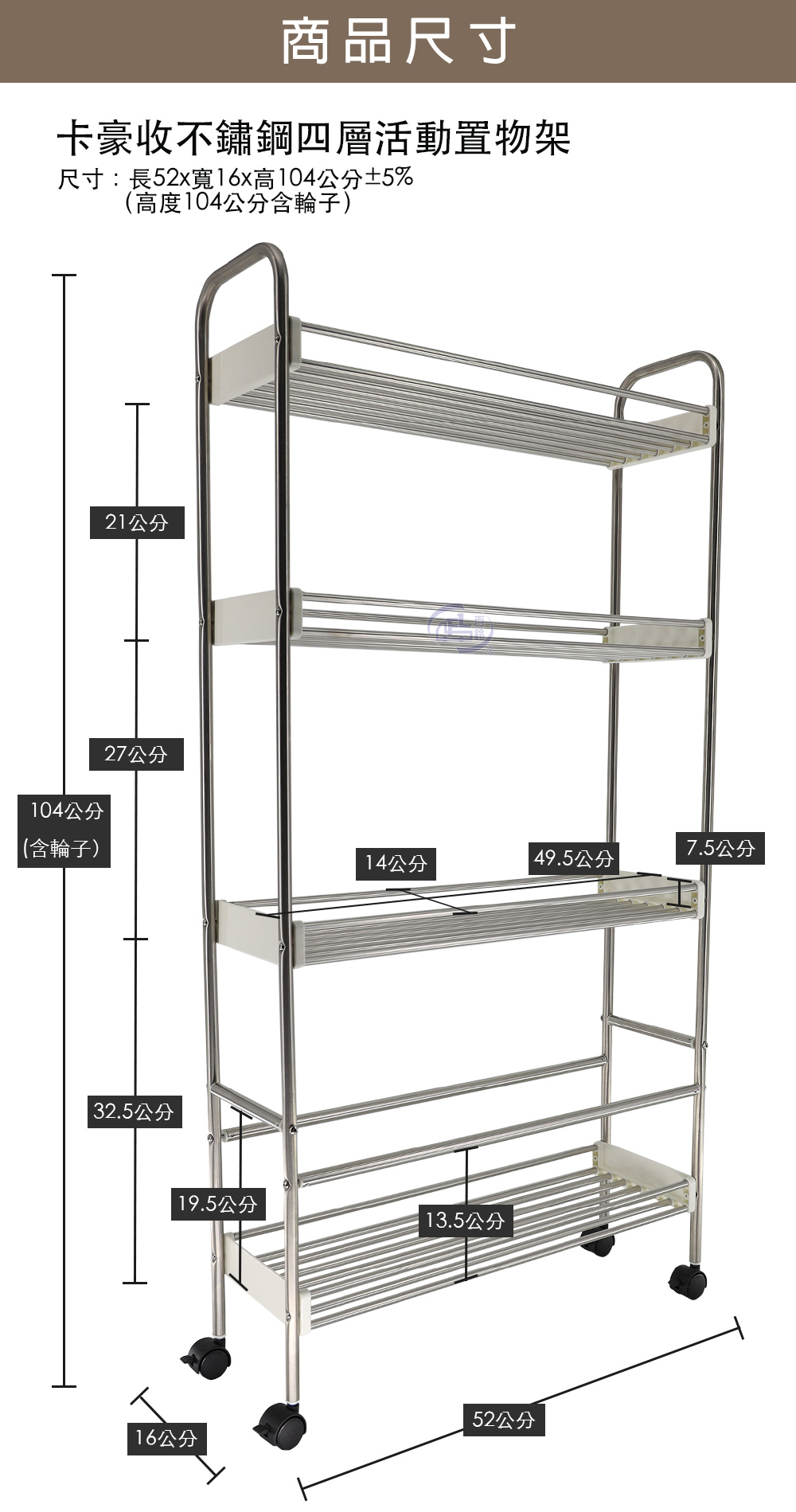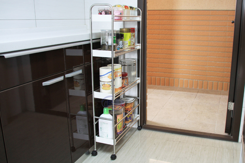 【百鈴】卡豪收不鏽鋼四層活動置物架(隙縫櫃/收納/廚櫃/架子/籃子/置物架/推車)