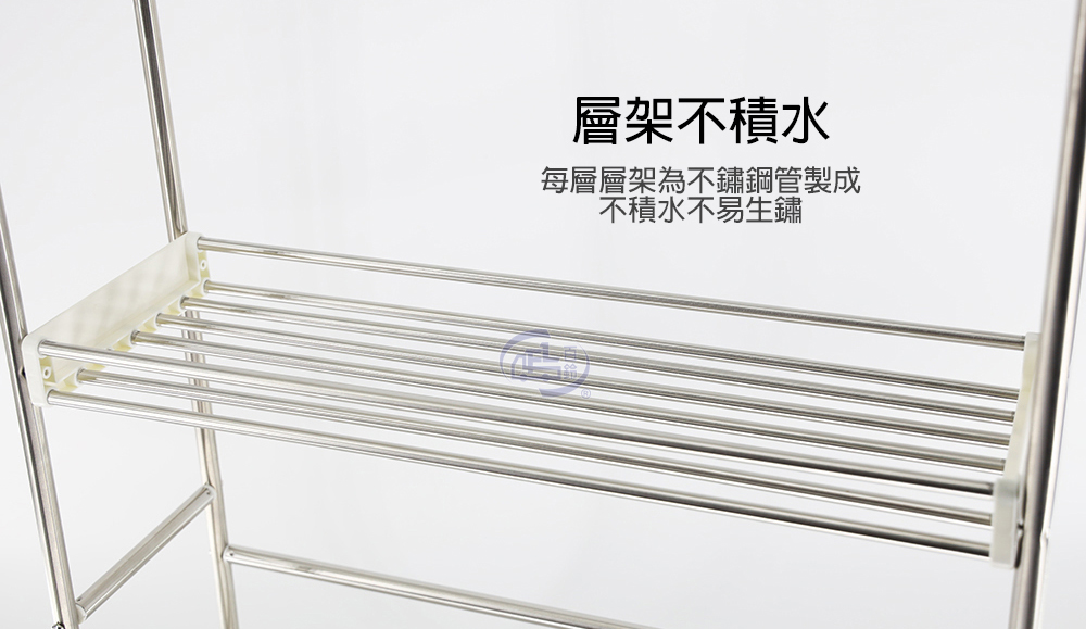 數量:U型不鏽鋼管(附移動輪)x2個、層架x4個、螺絲x16個、側邊防倒不鏽鋼管50公分x2個/組