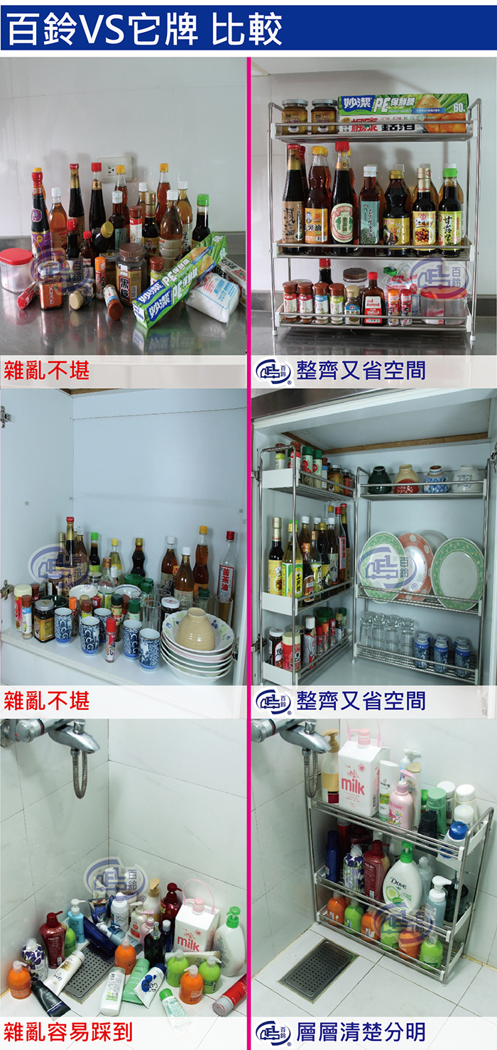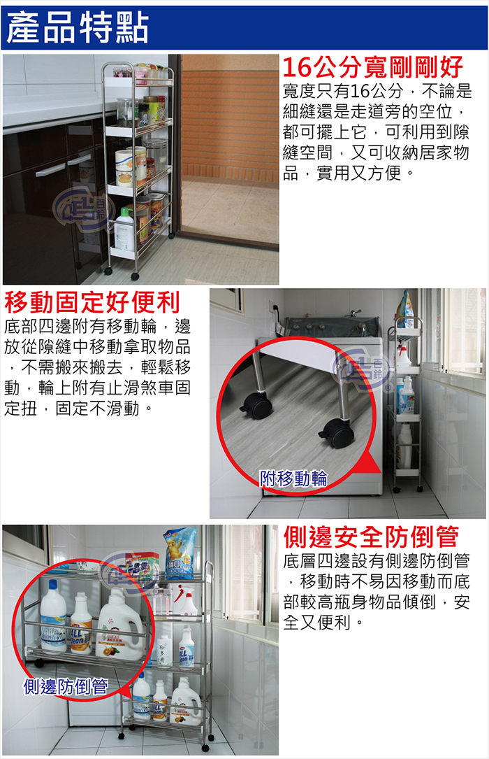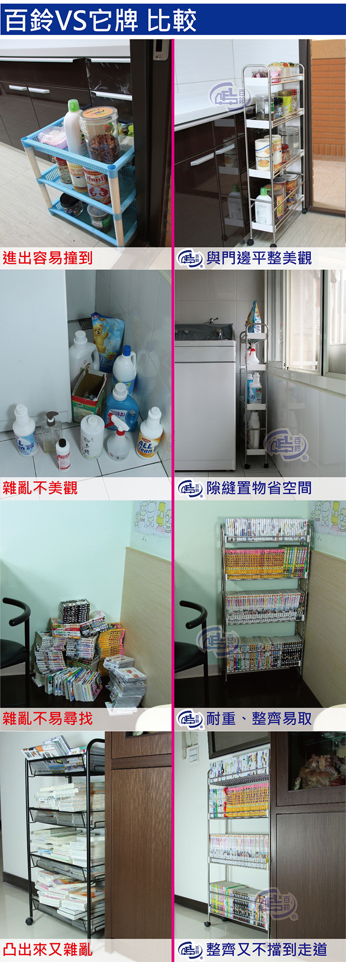 【百鈴】不鏽鋼多用途隙縫收納置物櫃組-三層+四層