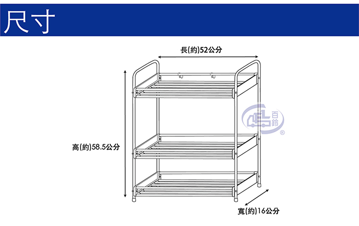 尺寸:長52公分 x 寬16公分 x 高58.5 公分 ±5%