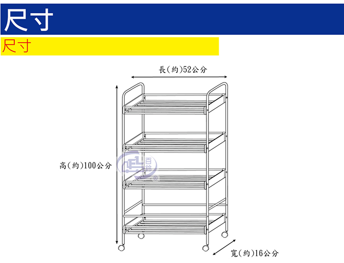 尺寸:長52公分 x 寬16公分 x 高100公分