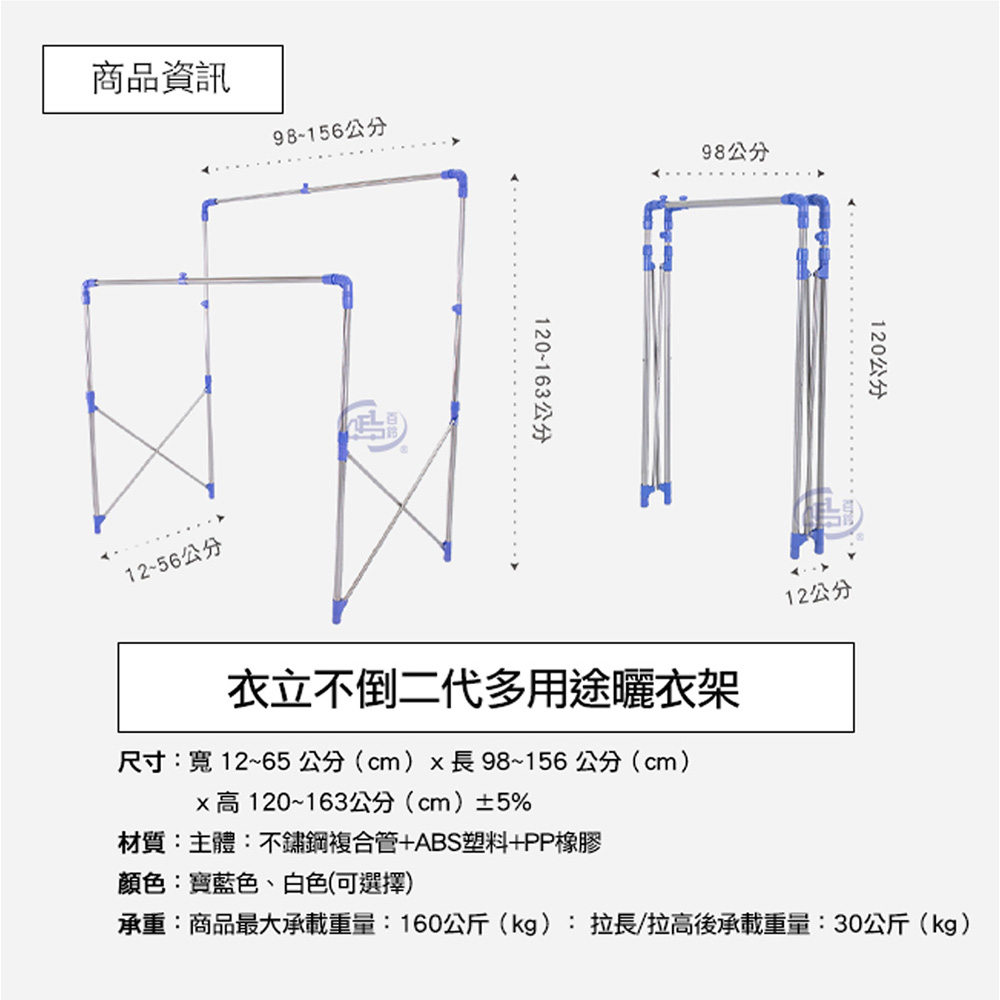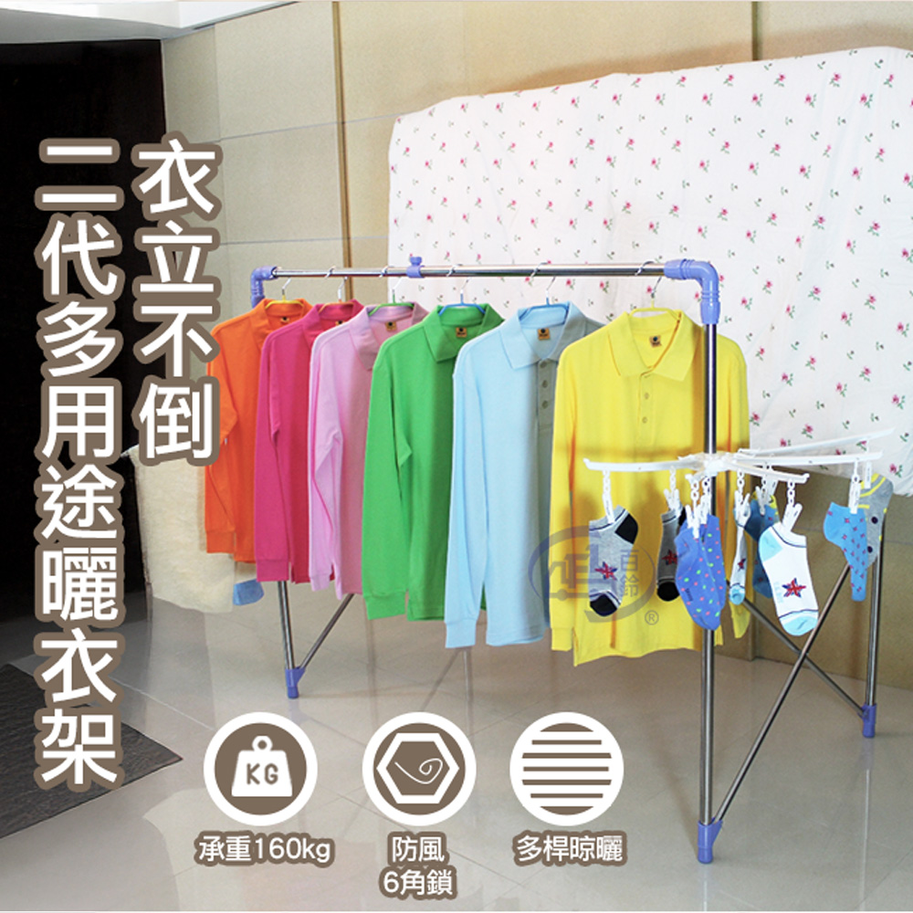 【百鈴】衣立不倒二代多用途曬衣架(曬衣架/掛衣架/室內衣架/移動架/棉被架/毛巾架)