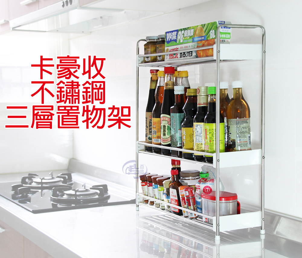 【百鈴】卡豪收不鏽鋼三層置物架(收納架/層架/瓶罐架/調味罐架/廚房收納)