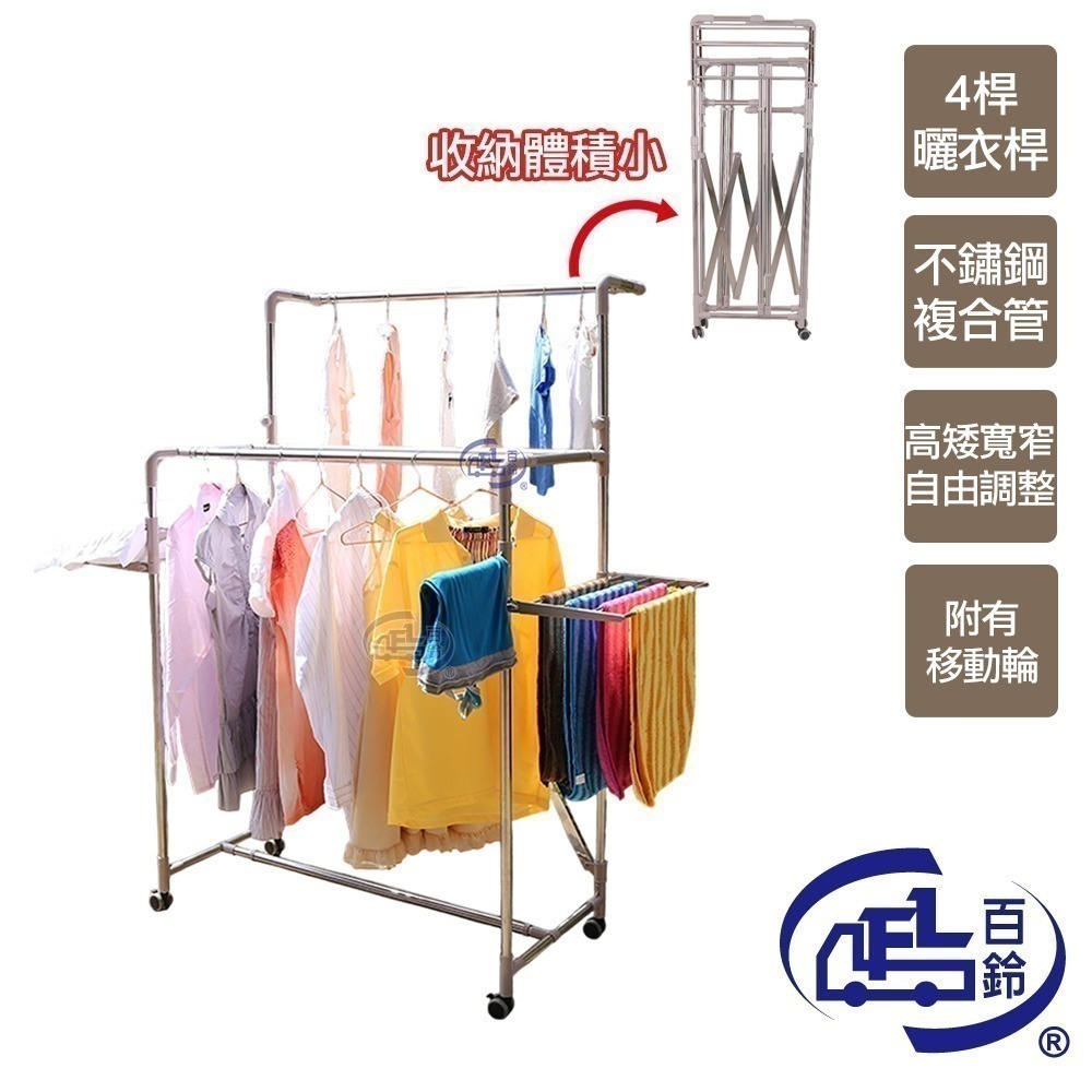 【百鈴】衣立不倒行動多層百變雙翅衣物架(曬衣架/掛衣架/室內衣架/移動架/棉被架/毛巾架)
