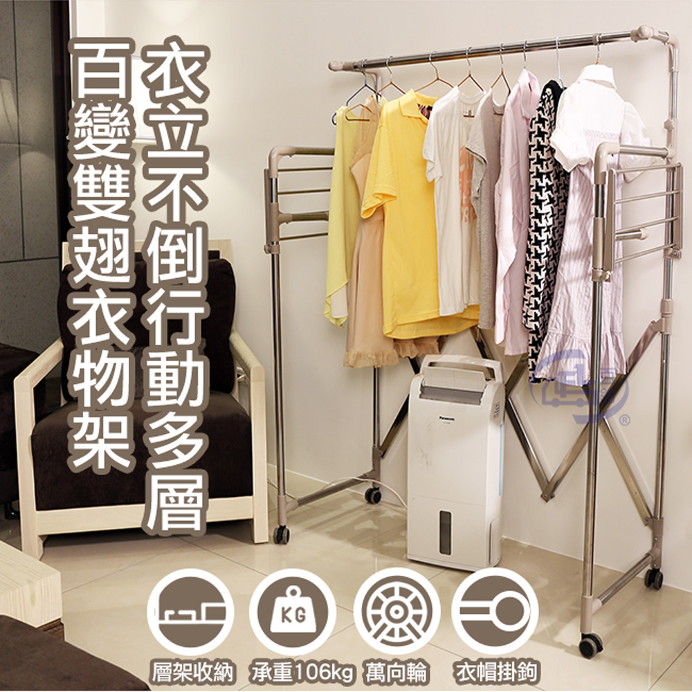 名稱:衣立不倒行動多層百變雙翅衣物架