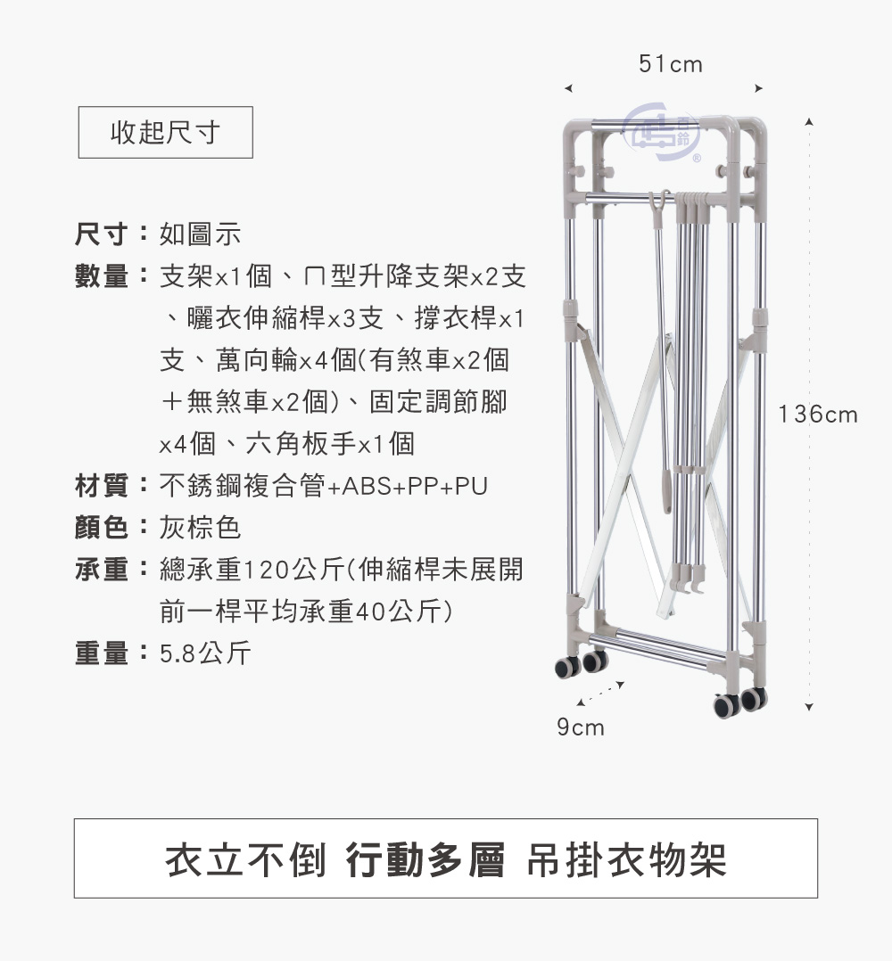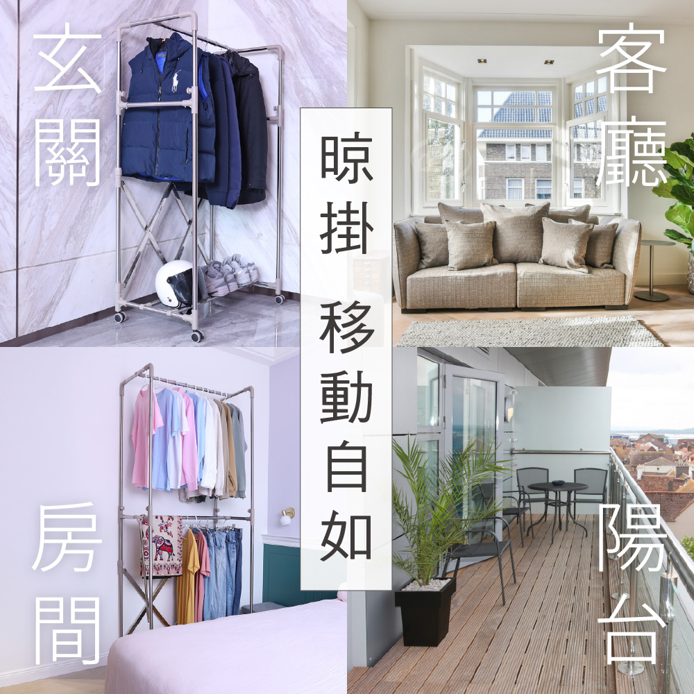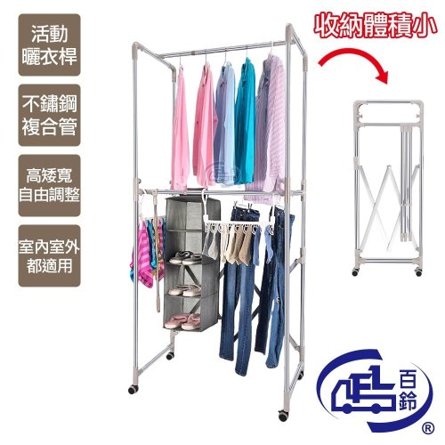 【百鈴】衣立不倒行動多層吊掛衣物架組曬(衣架/掛衣架/室內衣架/移動架/棉被架/毛巾架)