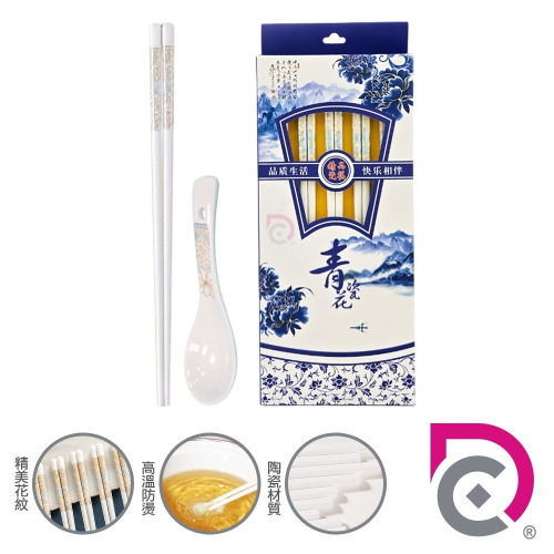 【德昌】青花瓷陶瓷筷匙組(日用餐具/陶瓷筷/陶瓷餐具/環保餐具/防滑湯匙)