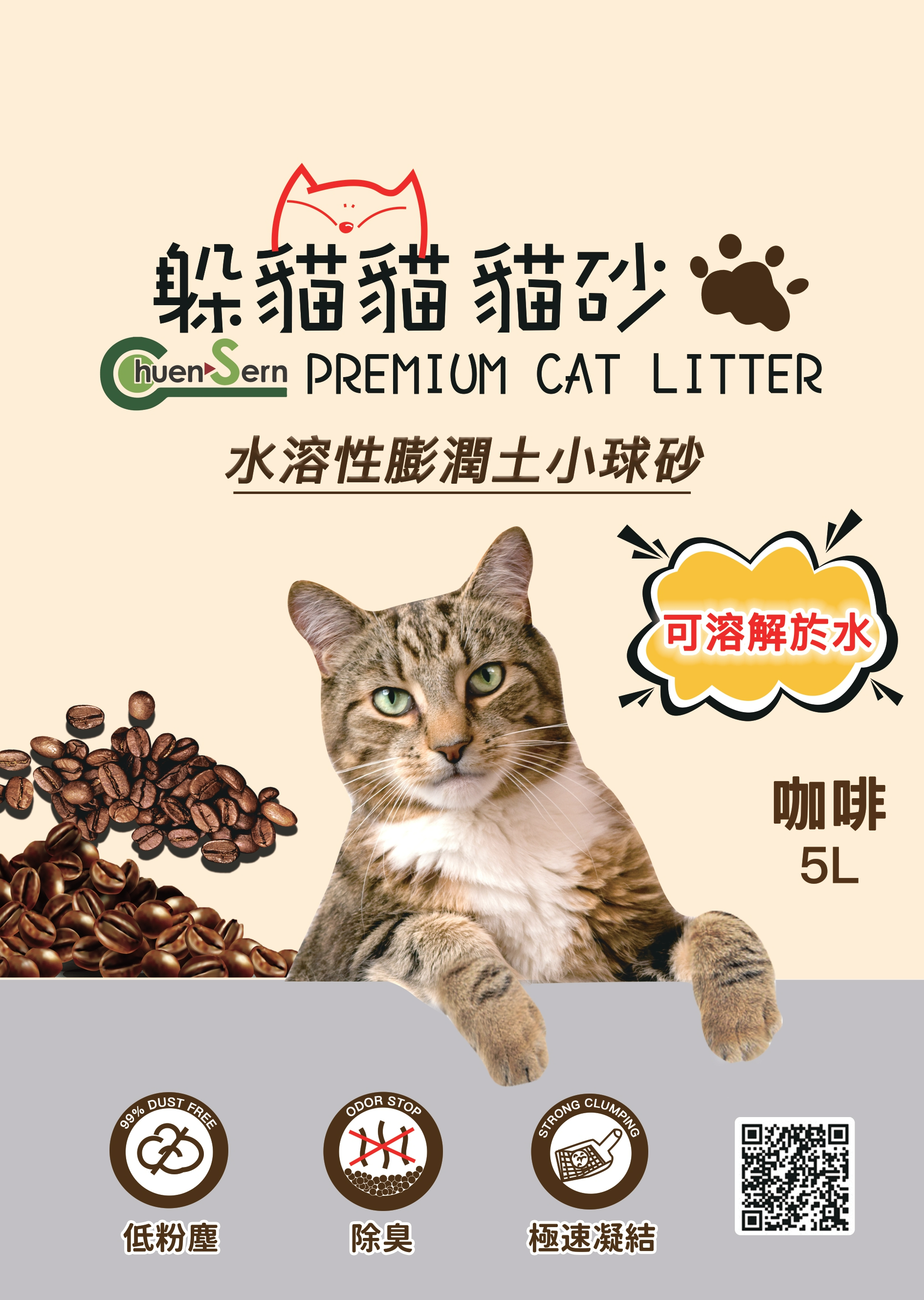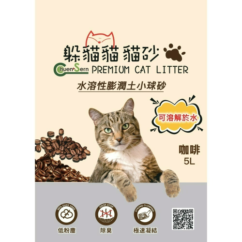 【宅配/超取賣場】【躲貓貓】水溶性膨潤土小球砂貓砂5L(4kg)/包-咖啡香